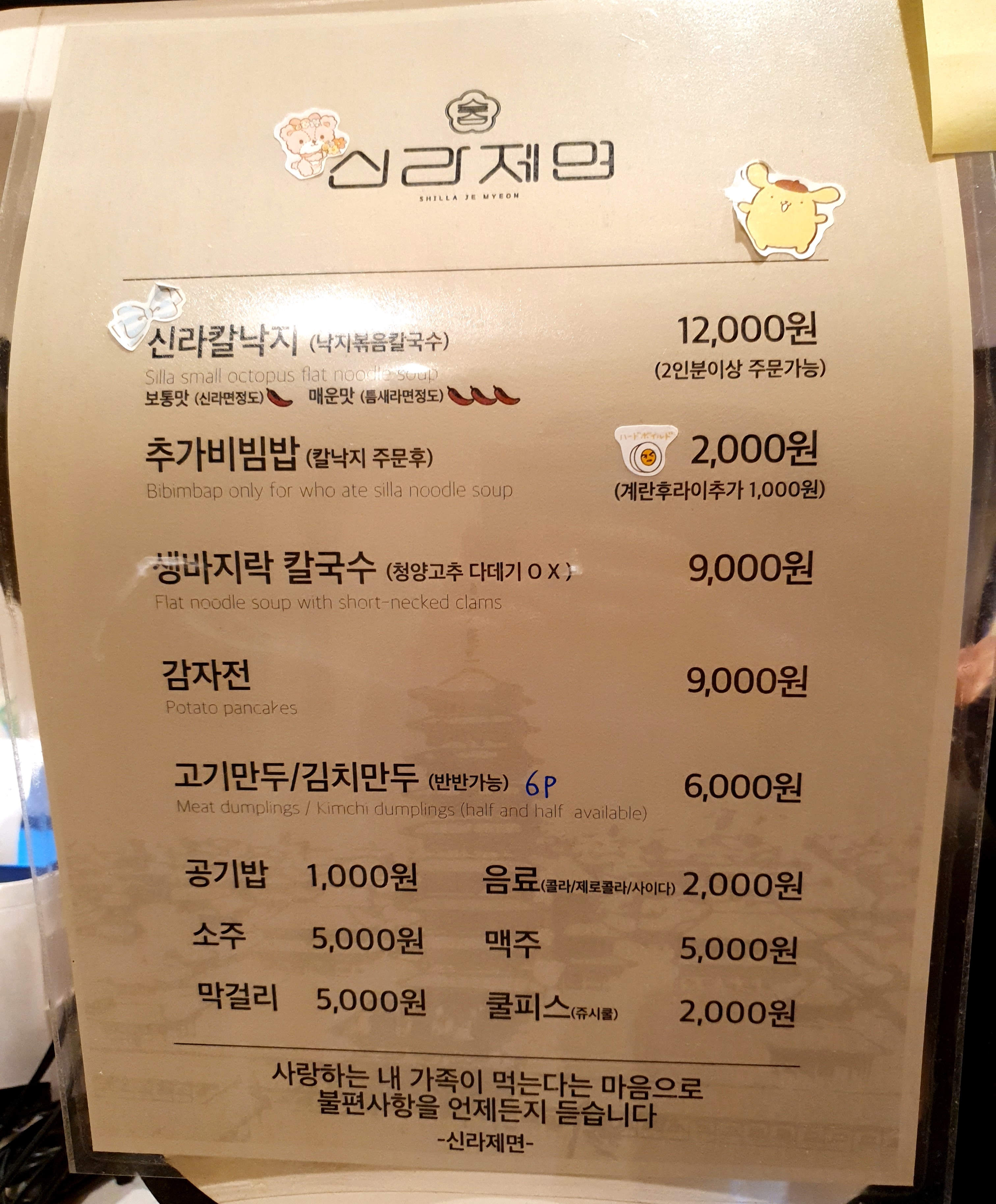 메뉴는 신라칼낙지(낙지볶음칼국수)와 추가비빔밥,